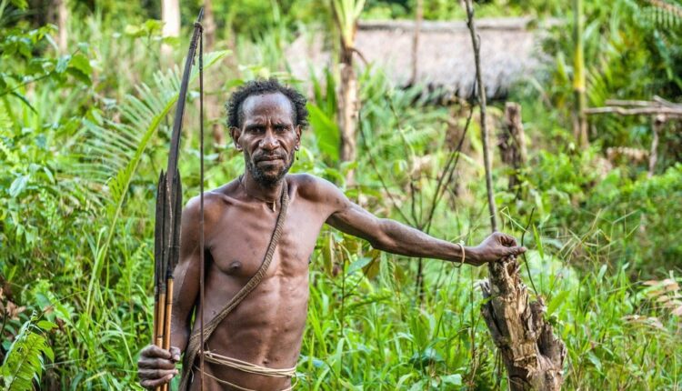 Ba tare da wani fasaha na yammacin duniya ko kayan aiki ba, ana yin farauta ne tare da baka da kibiya. Wadannan kayan aikin ba wai kawai ana amfani da su don farautar dabbobi ba, har ma da farautar wasu mutane, masu kutse daga mutane da ke hamayya da su ko kuma baki da ba sa so.